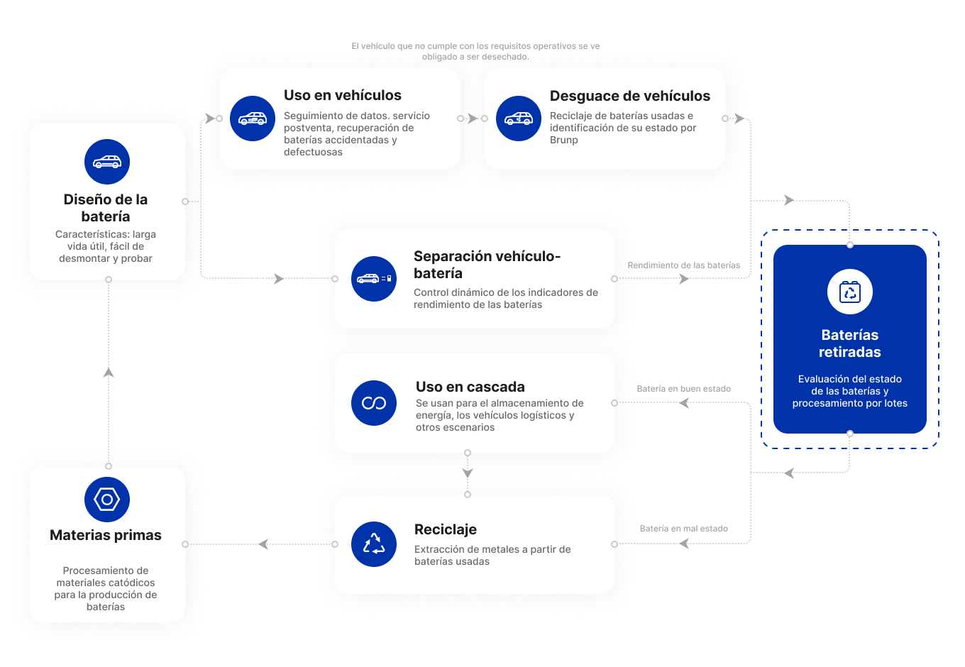 Con el apoyo de su subsidiaria Brunp, CATL ha trabajado con sus clientes para crear un circuito cerrado de producción de baterías - aplicación - uso en cascada - reciclaje de baterías. Al mismo tiempo, CATL está en conversaciones con socios locales en Europa para la cooperación estratégica en áreas de materiales activos catódicos y reciclaje de baterías, con el fin de promover el despliegue de CATL en Europa y desarrollar una cadena de valor de baterías sostenible, contribuyendo así a la consecución de objetivos globales de neutralidad de carbono.